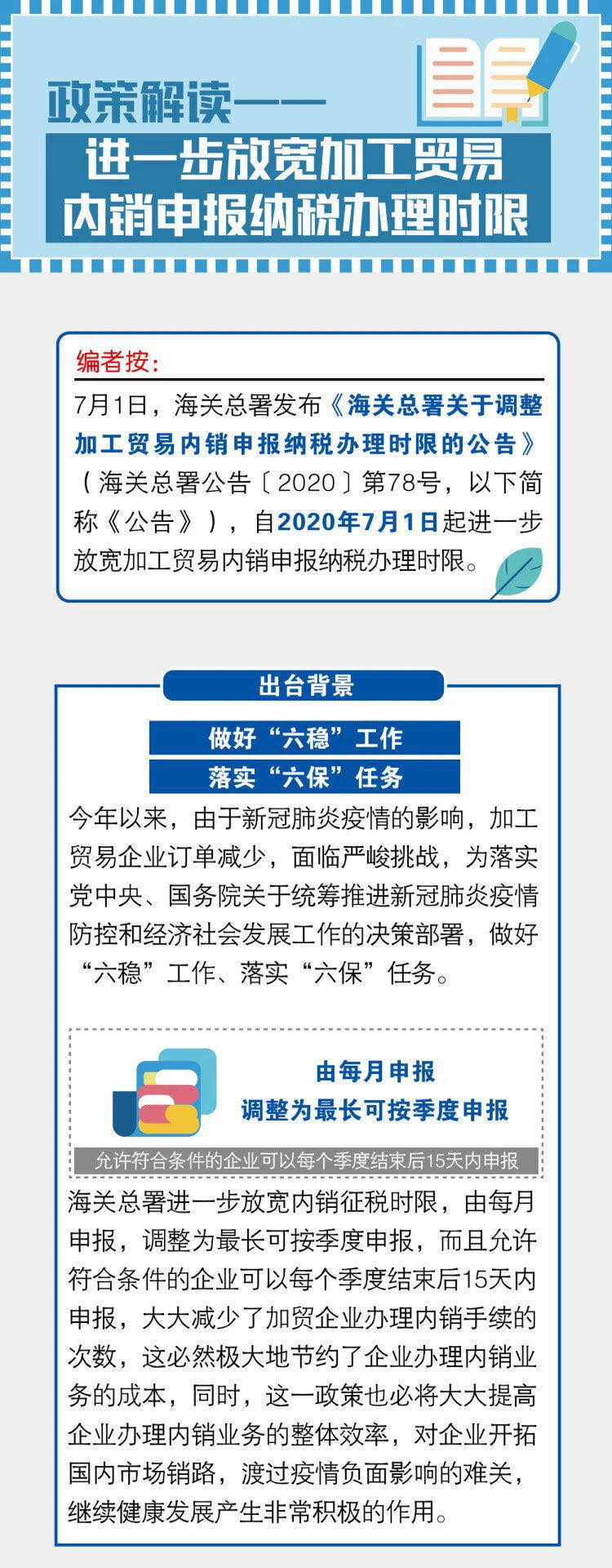 海關(guān)公告解讀:進(jìn)一步放寬加工貿(mào)易內(nèi)銷申報(bào)納稅辦理時(shí)限