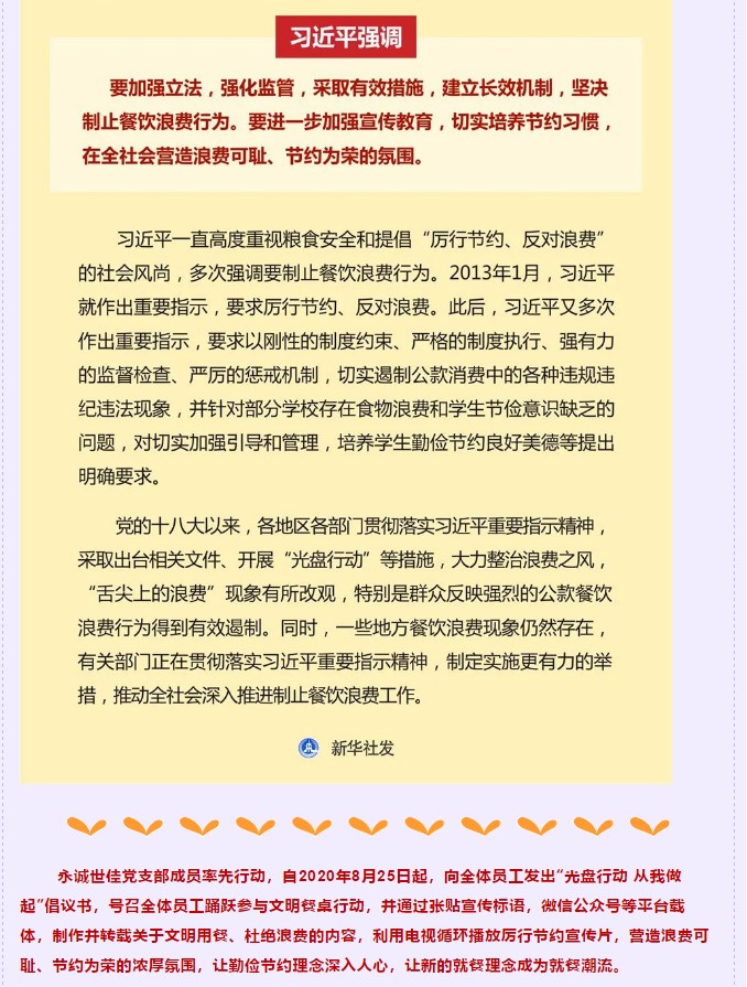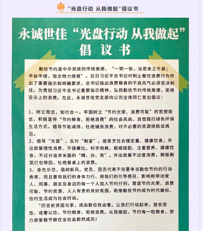 “光盤行動”人人踐行 節(jié)約“食尚”悄然成風(fēng)——永誠世佳開展“光盤行動,從我做起”主題宣傳教育活動