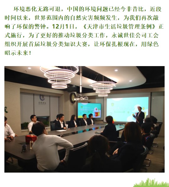讓環(huán)保扎根現(xiàn)在 用綠色昭示未來——永誠世佳工會組織開展首屆垃圾分類知識大賽