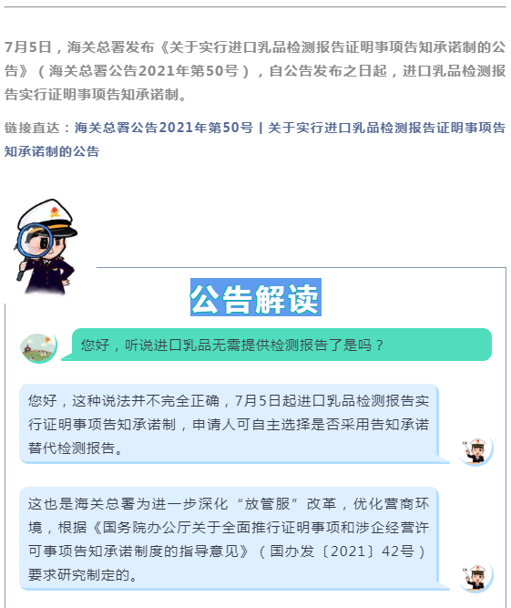 關(guān)于實行進(jìn)口乳品檢測報告證明事項告知承諾制的公告的解讀