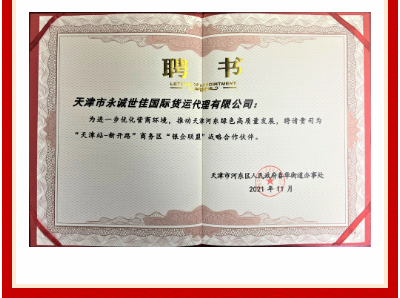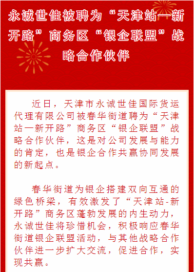 永誠世佳被聘為“天津站—新開路”商務(wù)區(qū)“銀企聯(lián)盟”戰(zhàn)略合作伙伴