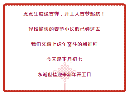 永誠世佳贏戰(zhàn)虎年,開工大吉!