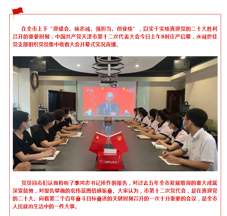 永誠世佳黨支部組織收看中國共產(chǎn)黨天津市第十二次代表大會(huì)開幕式