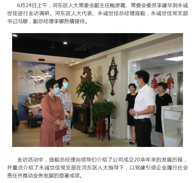 河?xùn)|區(qū)人大常委會領(lǐng)導(dǎo)走訪永誠世佳