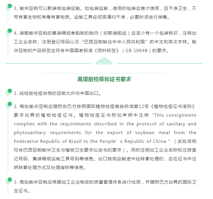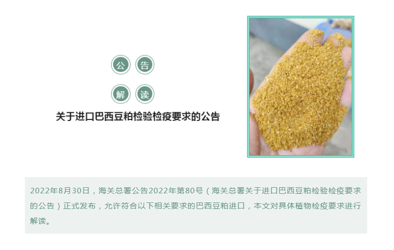 海關(guān)總署關(guān)于進(jìn)口巴西豆粕檢驗(yàn)檢疫要求的公告