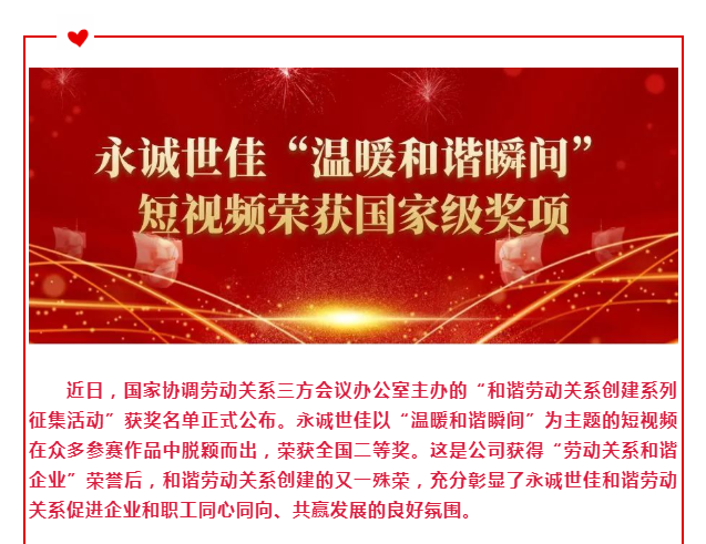 永誠世佳“溫暖和諧瞬間”短視頻榮獲國家級獎項