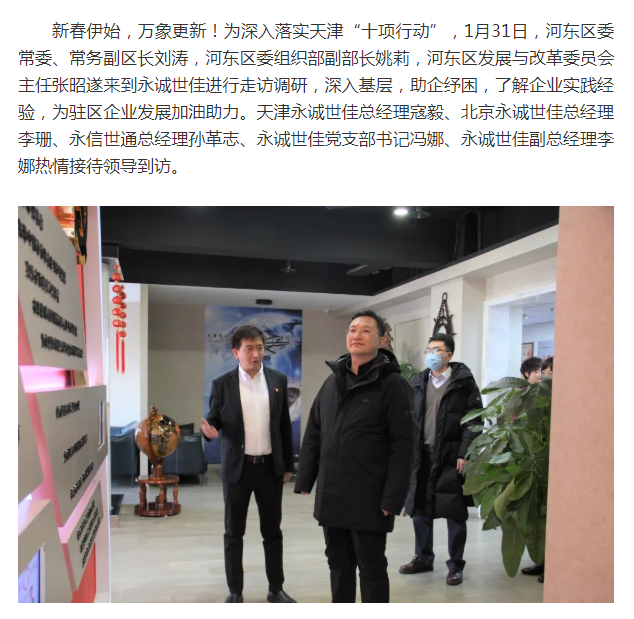 新春伊始,河?xùn)|區(qū)委常委、常務(wù)副區(qū)長(zhǎng)劉濤率隊(duì)走訪永誠世佳