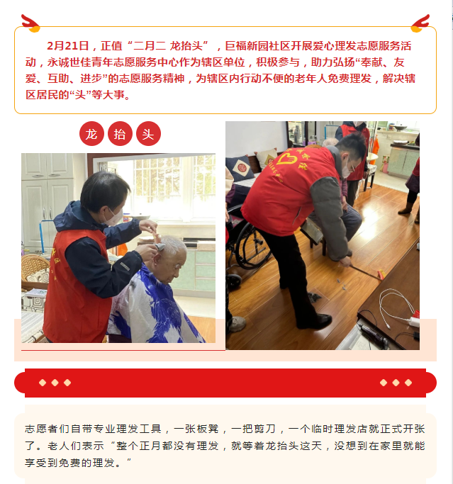 永誠世佳青年志愿服務(wù)中心參加“二月二 龍?zhí)ь^”志愿理發(fā)活動