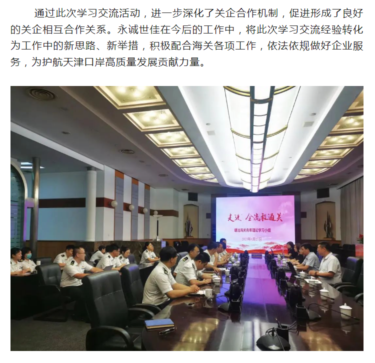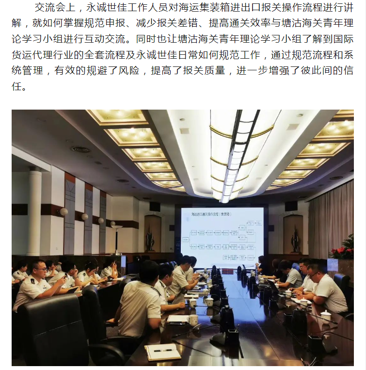 塘沽海關(guān)與永誠(chéng)世佳聯(lián)合開(kāi)展“海運(yùn)集裝箱進(jìn)出口通關(guān)業(yè)務(wù)操作流程”學(xué)習(xí)交流活動(dòng)