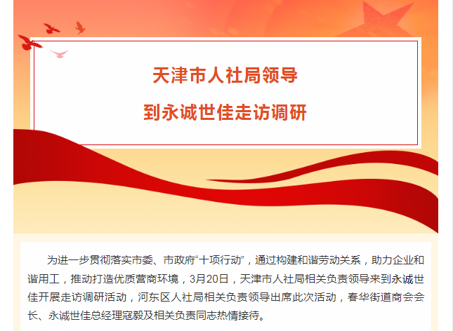 天津市人社局領(lǐng)導(dǎo)到永誠世佳走訪調(diào)研