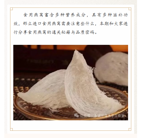 【木子工作室】進(jìn)口食用燕窩的通關(guān)秘籍與品質(zhì)密碼